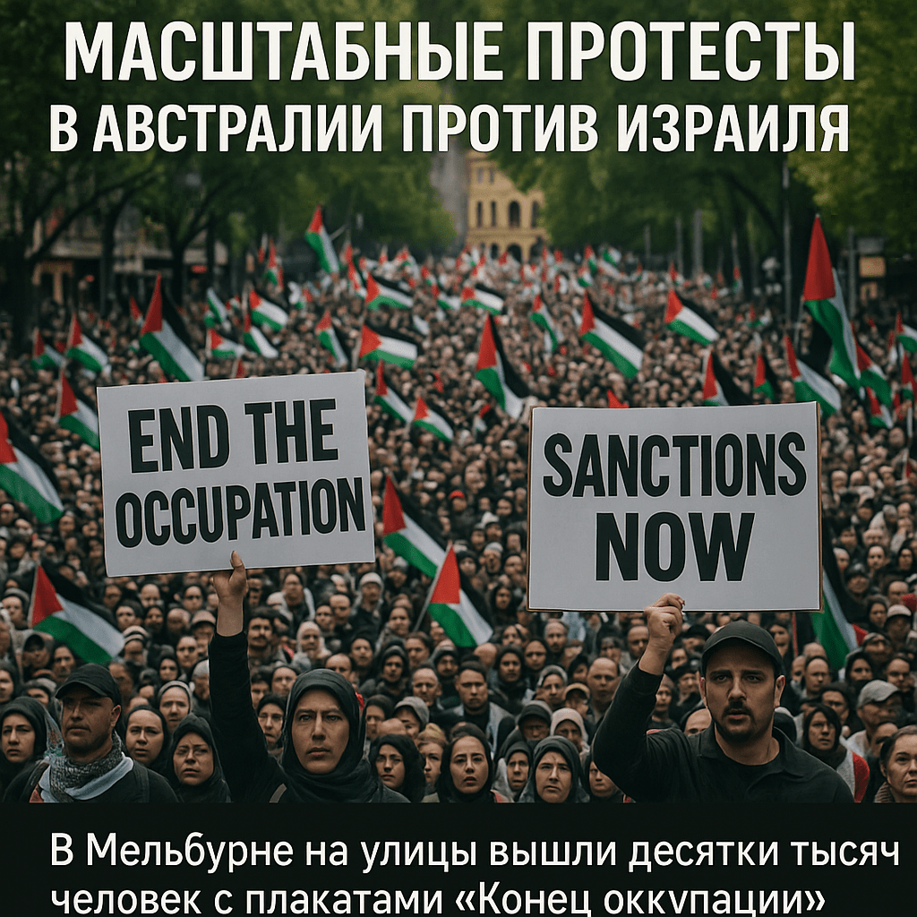 В Австралии проходят масштабные акции протеста против Израиля. В Мельбурне на улицы вышли десятки тысяч человек с плакатами «Конец оккупации» и «Санкции немедленно».